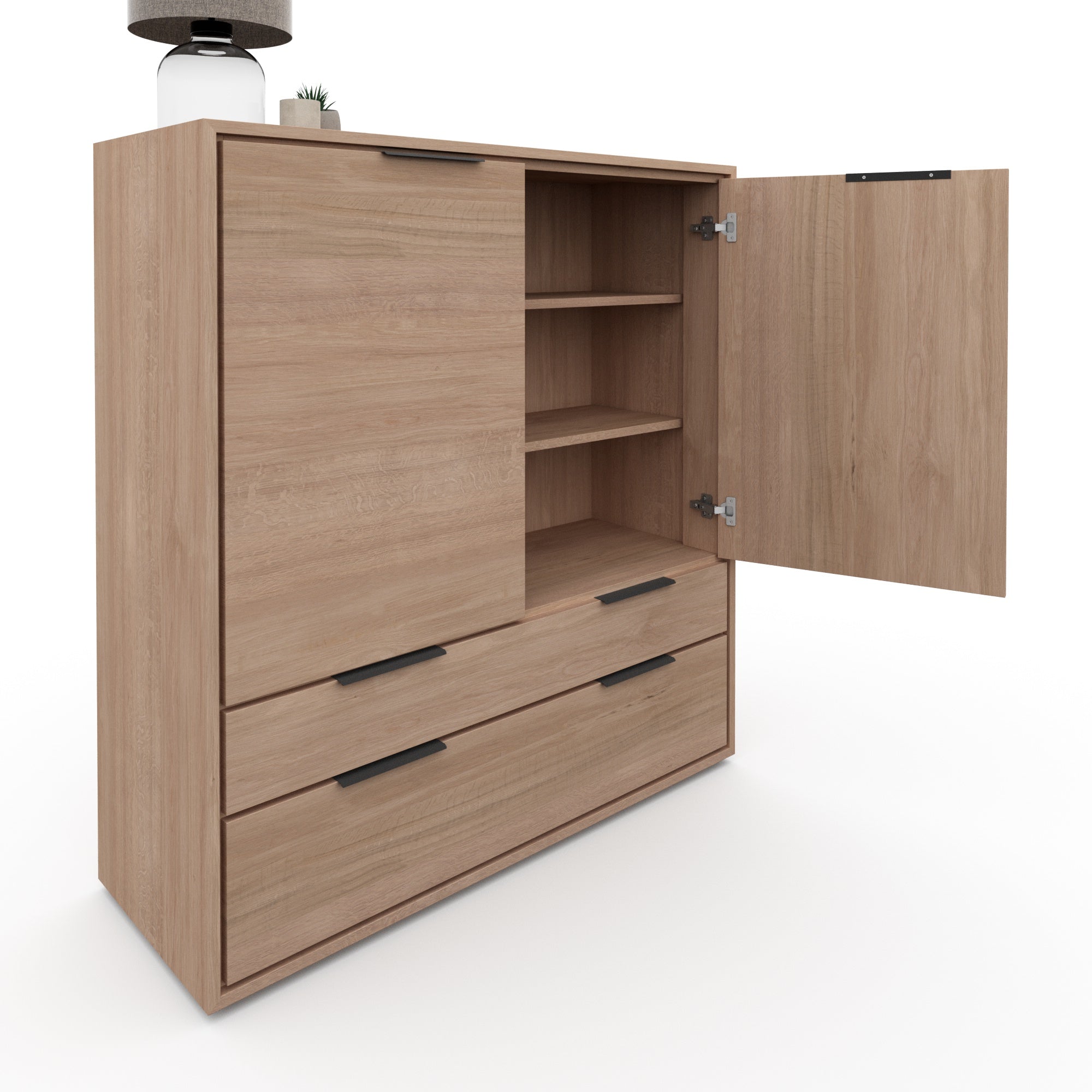 Expertly crafted with an oak veneer finish, Aspen is a sleek and stylish cupboard perfect for any home. The high-quality materials used in its construction ensure durability and longevity, making it a practical and beautiful addition to your living space. Upgrade your storage solution with Aspen.