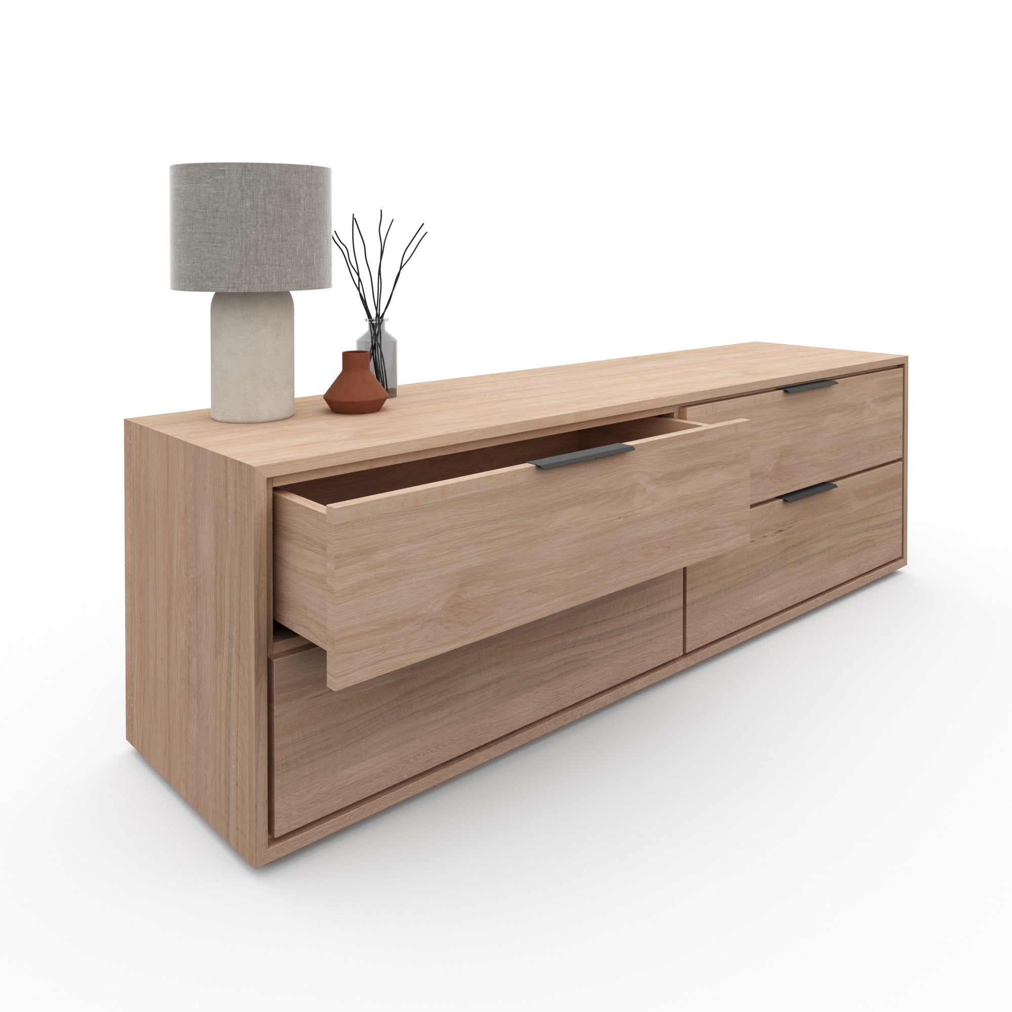 Crafted with precision and elegance, the Aspen TV unit features a stunning oak veneer finish. Its durable and sleek design adds a touch of sophistication to any living space. Enjoy the luxurious look and feel of real wood with the added benefit of easy maintenance.