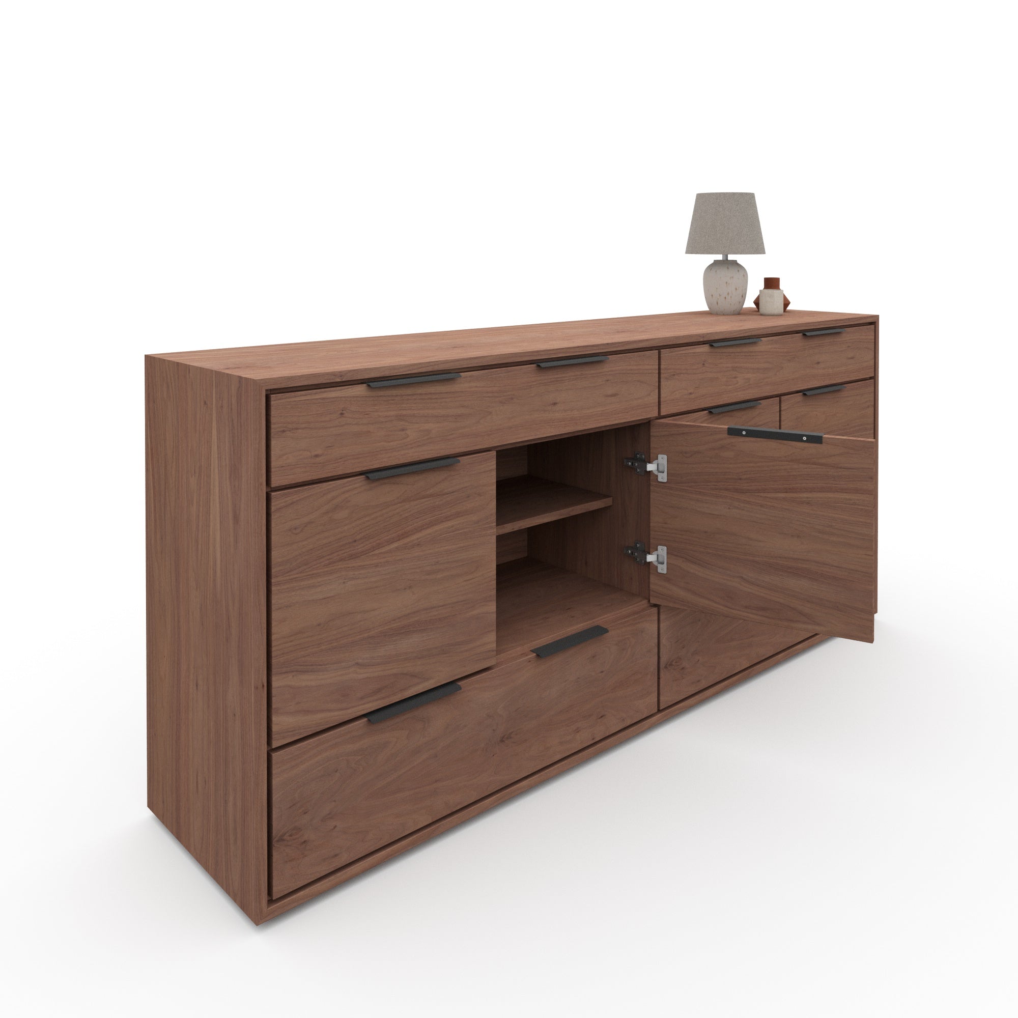 Aspen is a large walnut veneer sideboard that adds a touch of warmth and elegance to any room. Crafted with high-quality materials, this sideboard offers ample storage space while also enhancing your home decor. The beautiful walnut veneer adds a natural touch while the large size makes it perfect for storing all your essentials. Elevate your living space with Aspen.