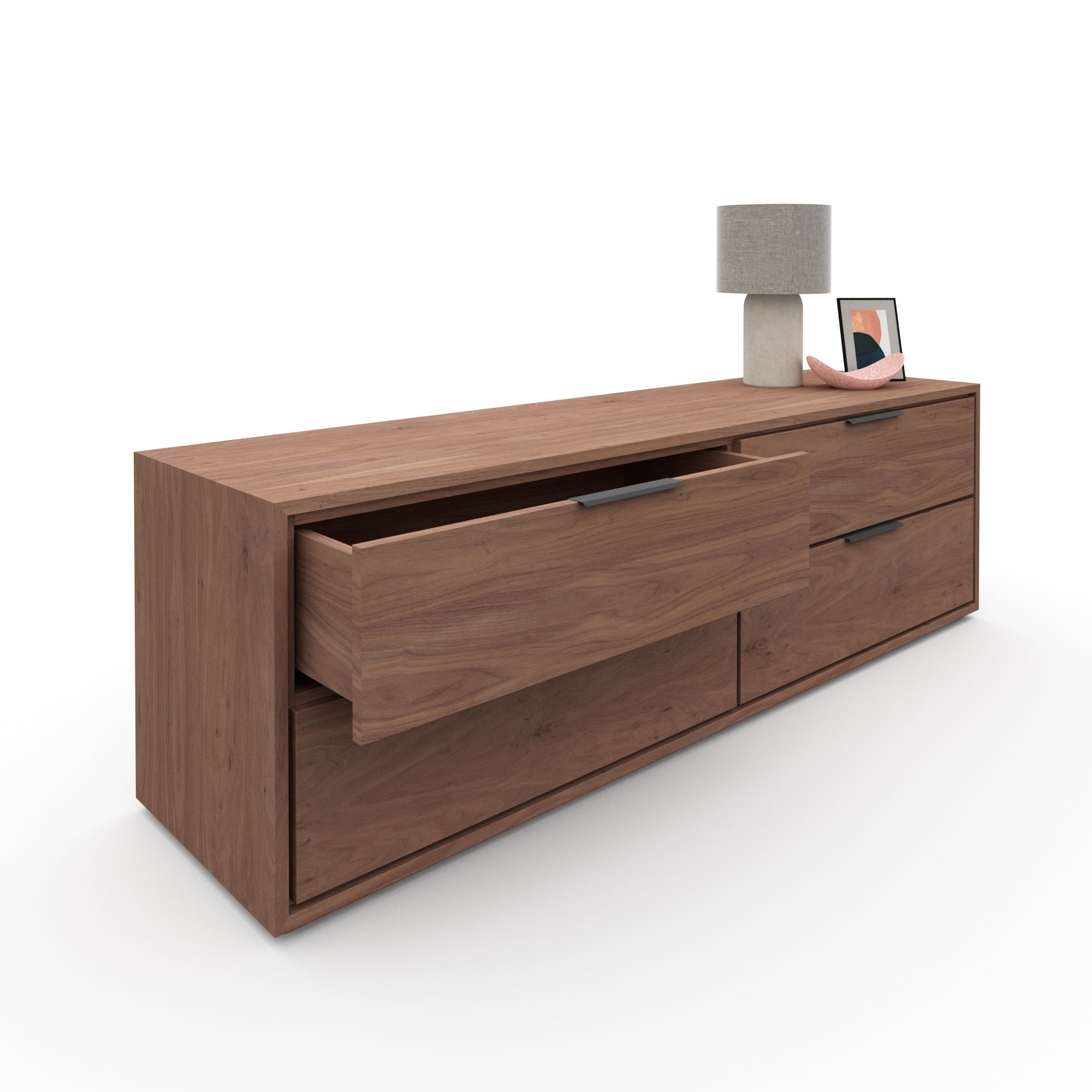 Crafted with precision and elegance, the Aspen TV unit features a stunning walnut veneer finish. Its durable and sleek design adds a touch of sophistication to any living space. Enjoy the luxurious look and feel of real wood with the added benefit of easy maintenance.
